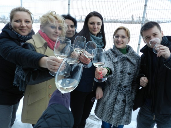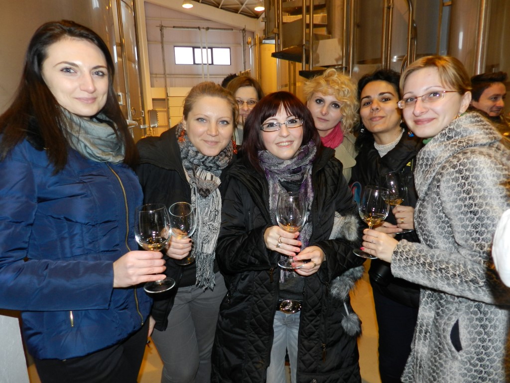 Ajunsi la destinatie, am fost plimbati prin crama unde am degustat vinuri, rand pe rand, din tancurile care stateau marete. Am vazut cum se pun etichetele, cum se pune dopul, cum se lipeste eticheta de pe dop cu un “uscator” special (seamana putin cu cel de par, doar ca e mai puternic).