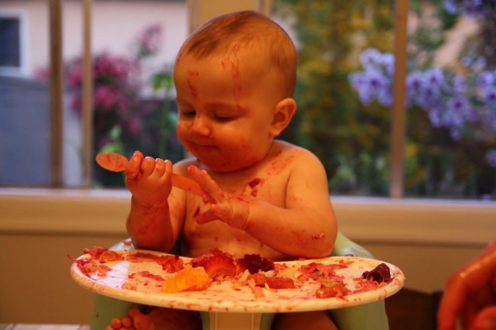 4. faptul ca li se ofera sa “manance” orice (repet, pentru mine nu se cheama ca mananca ceea ce fac ei cel putin in prima faza), fara niciun fel de restrictii, cred de asemenea ca este nesanatos pentru stomacel, pentru intregul aparat digestiv care nu cred ca este pregatit o buna bucata de vreme sa absorba orice fel de fructe, legume, alimente, etc.
