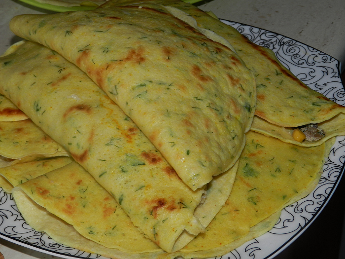 Quesadilla de casa cu sunca, ciuperci si porumb