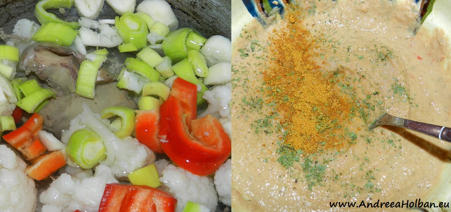Se lasa sa fiarba cateva minute impreuna, iar apoi se paseaza cu o lingura sanatoasa de unt. Se adauga mirodenii: tarhon si putin curry (dupa 1 an se poate adauga si sare).