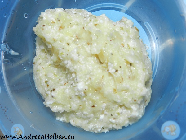 Piure de cartof cu branza proaspata de vaci si oregano (dupa 8 luni)
