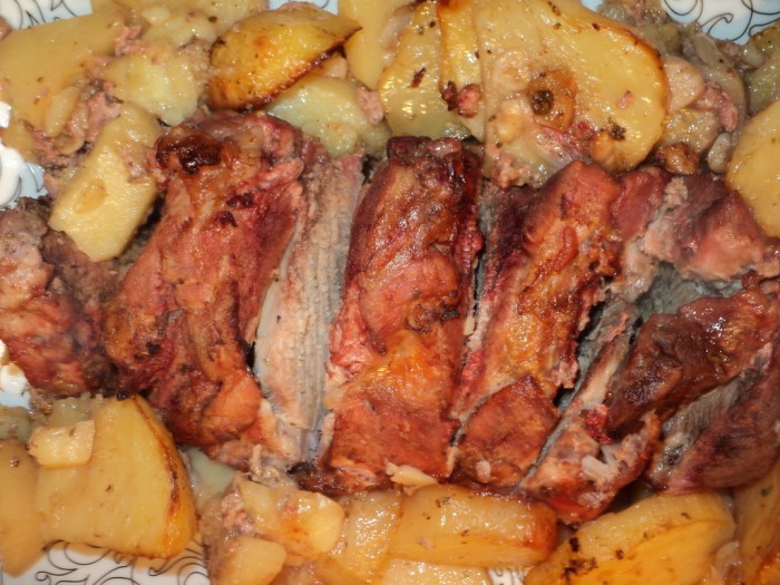 Muschi de porc la cuptor cu usturoi si ardei iute