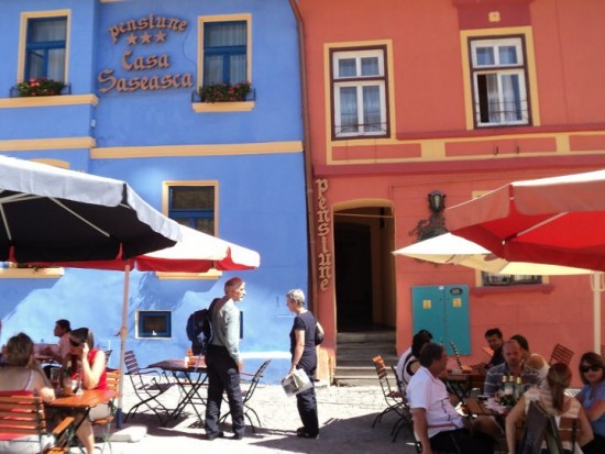 Oo daaa, am ajuns la Casa Saseasca din Sighisoara, unde am fost intampinati de un design special de calduros si frumos. Mobilierul pictat manual m-a fermecat cu totul. Terasa mica si intima, culorile chipese care se regasesc te fac sa te simti comfortabil si simti ca nu mai vrei sa parasesti locatia.