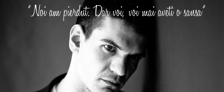 Daca voi lasati tara asta pe mana hotilor, atunci, de-abia copii vostri vor mai avea o sansa! Caci sansa vine o data la o generatie. Noi am pierdut. Cativa dintre noi, si nu suntem putini, va putem ajuta. Noi suntem Fomila si Setila, dar voi sunteti Harap-Alb. Alegeti dintre voi pe adevaratii lideri. Sa-i alegeti si sa nu-i invidiati. Lor le va fi cel mai greu. Vor avea gloria, dar si cosmarul. Vor fi salvatorii vostri, dar se vor pierde pe ei insisi. Liderii trebuie sa fie dintre voi. Si trebuie sa-i cautati de pe acum. Uitati-va unii la altii in fiecare zi si cautati-va capitanii. Altfel veti pieri o data cu noi. Si atunci portile libertatii ne vor fi inchise si EI vor castiga. Cine sunt ei? Stiti foarte bine. Ii vedeti in ziare, in fiecare zi.
