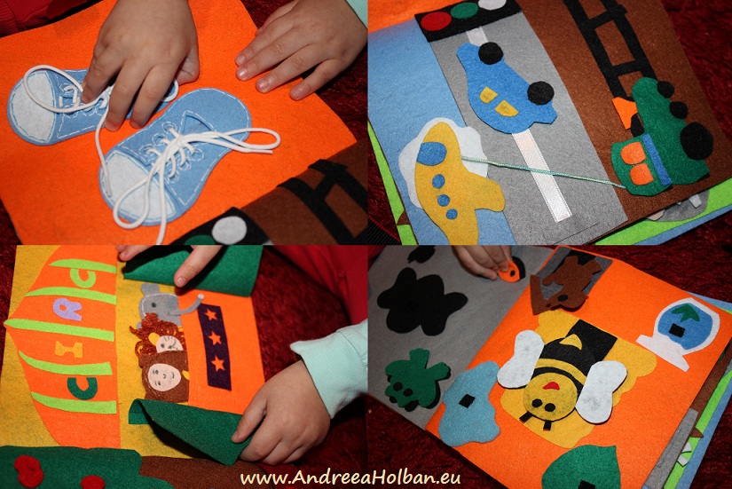 - Si cred ca cel mai important aspect este ca prin aceste carti, bebelinii isi exerseaza abilitatile de motricitate fina (legat sireturi, inchis capse, incheiat nasturi, fermoar, scaiuri, etc.),