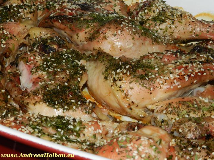 Pulpe de pui fragede, aromate cu usturoi si menta – la...