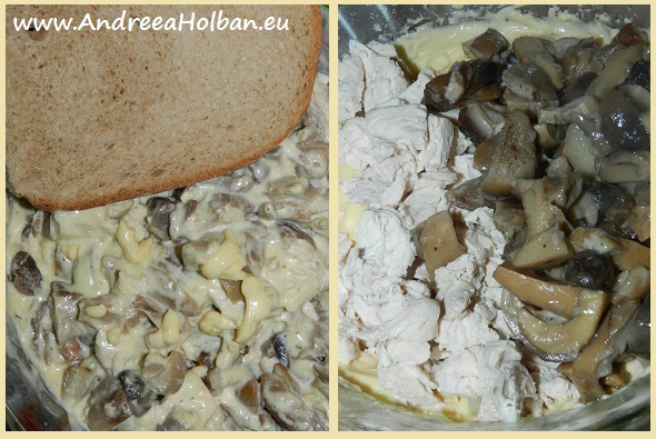 Salata de ciuperci cu piept de curcan si maioneza cu usturoi